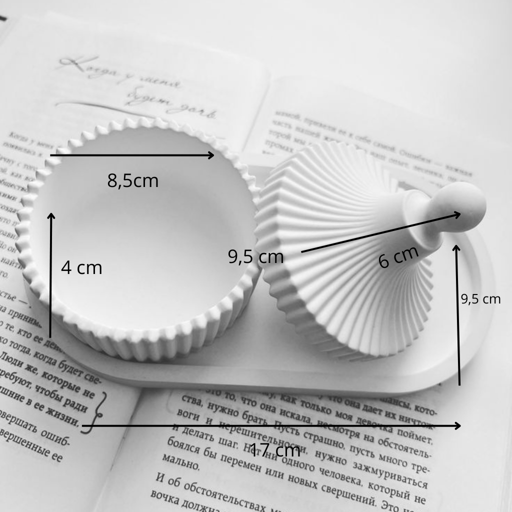 composto por bandeja decorativa de cimento branco em formato oval tamanho P + bombonier decorativa em cimento branco tamanho P.